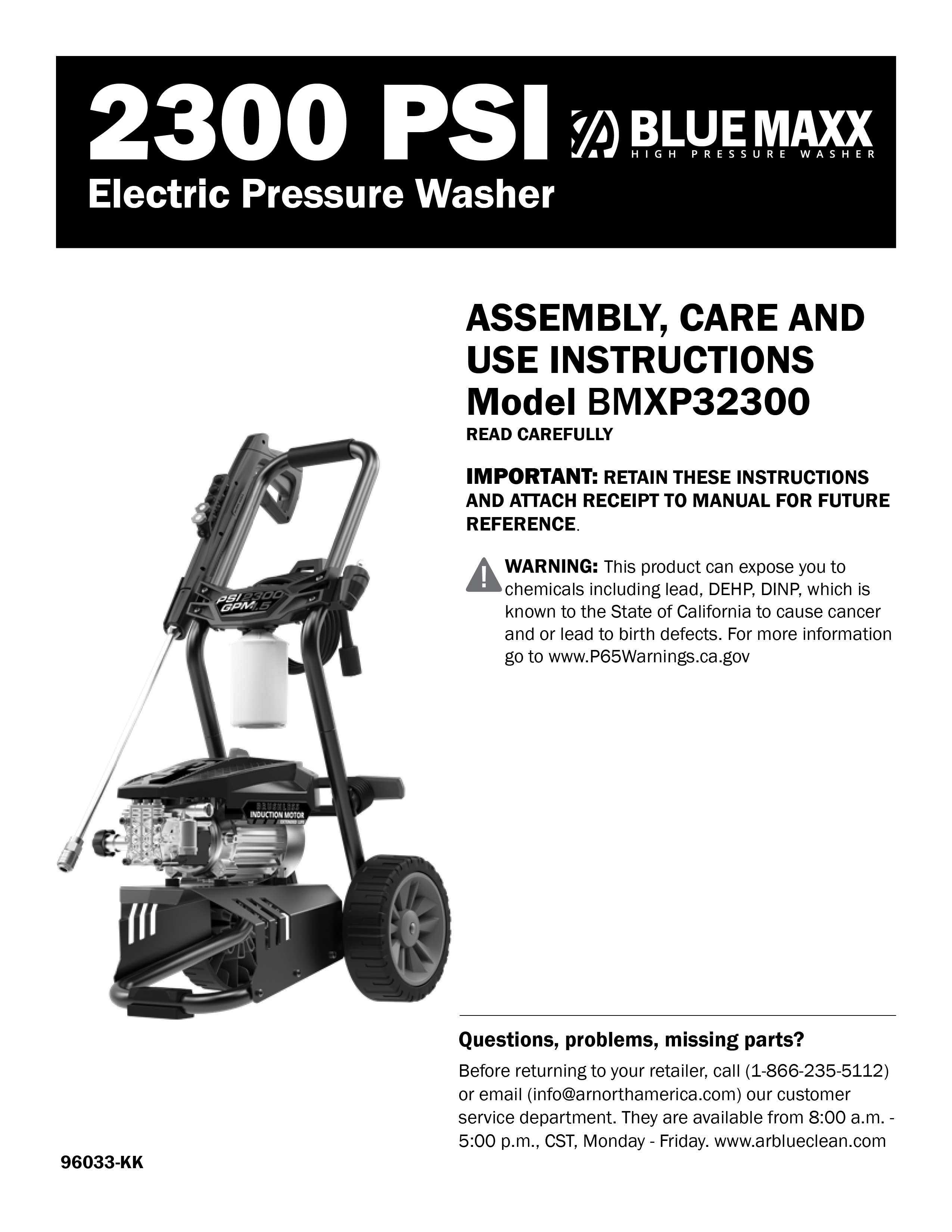 Blue Clean and Blue MAXX Consumer (non-commercial) pressure washer: